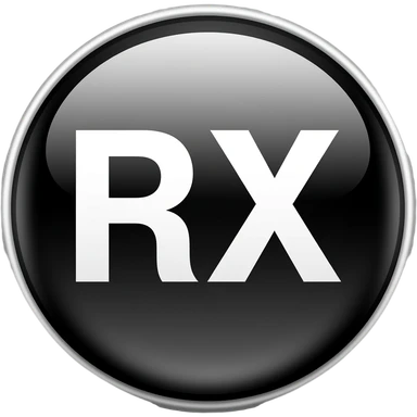 minimalist emoji of "RX" text inside a subtle crossfit-style badge, premium Telegram emoji, subtle design, thin elegant outline, black and white, transparent background. emoji