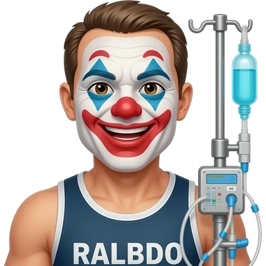 CrossFit inside joke emoji, Uncle Rhabdo a skinny clown hooked to a dialysis machine, minimalist vector style, premium Telegram emoji, subtle design, thin clean lines, black and white, transparent background. emoji