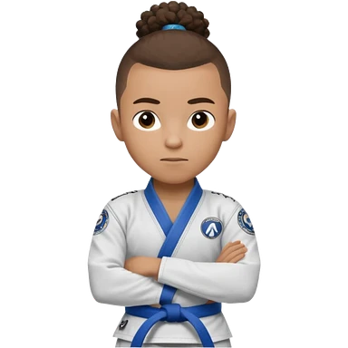black karate instructor with ponytail and a low taper haircut, and a small fade on the sides with a blue belt and roger Gracie academy logo on the gi emoji