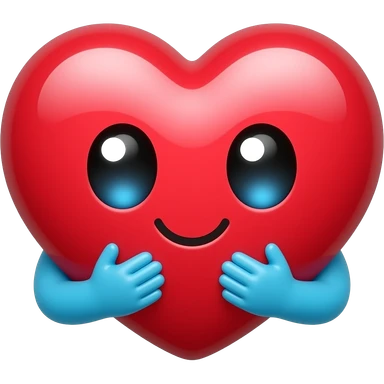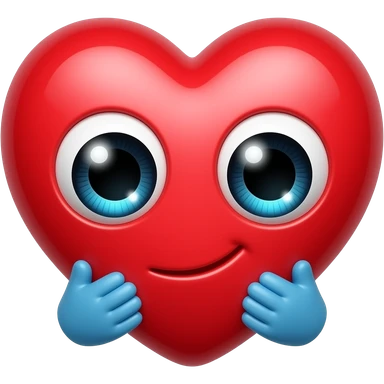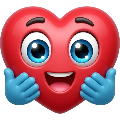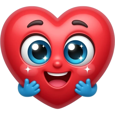 It is a cute red heart with big shiny eThe heart looks very excited and loving. At the bottom, there are two small blue hands hugging the heart, like it is giving a big hug. The eyes have sparkles, which makes it look adorable and emotional, like saying “aww” or “I love this!”. emoji