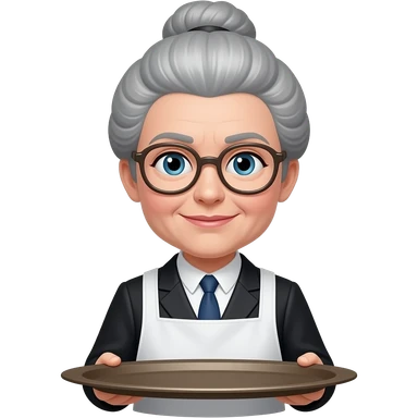 Mrs. Hudson icon, apron, gray bun hair, tray emoji