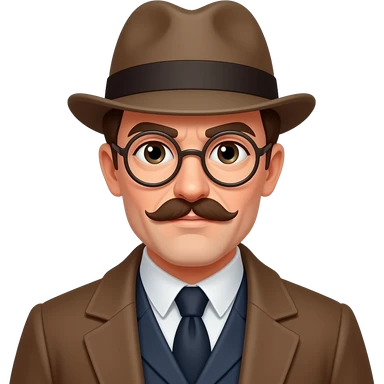 Doctor Watson (from Sherlock Holmes stiry) icon, bowler hat, mustache, brown suit, emoji