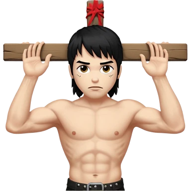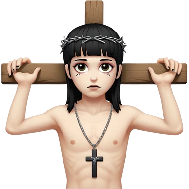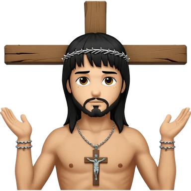 jesus-body-on-the-cross, with black edgy Emo hair emoji