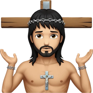 jesus-body-on-the-cross, black hair, punk hair emoji