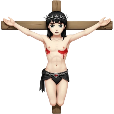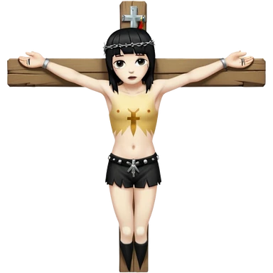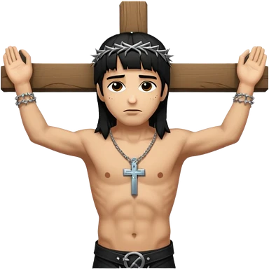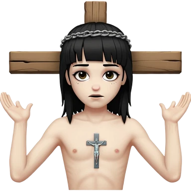 jesus-body-on-the-cross, crucifix, black hair, punk hair, punk bangs emoji