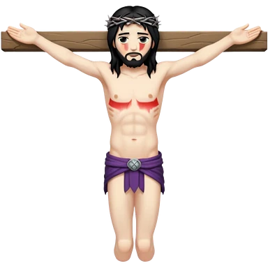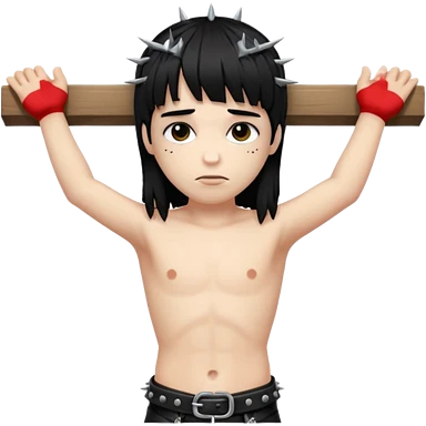 jesus-body-on-the-cross, man, crucifix, black hair, punk hair, punk bangs emoji