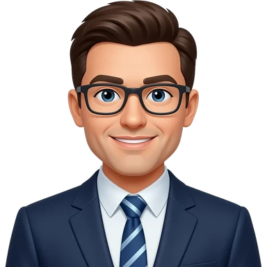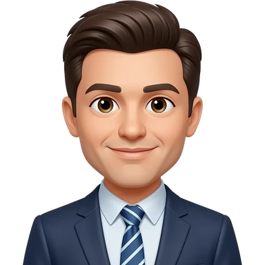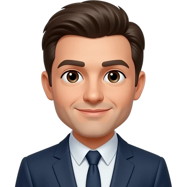 A 30-year-old professional man sitting on an office chair at a modern office desk, emoji