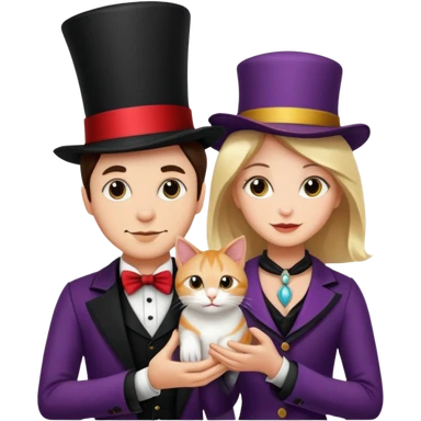 magician couple and their pet cat emoji