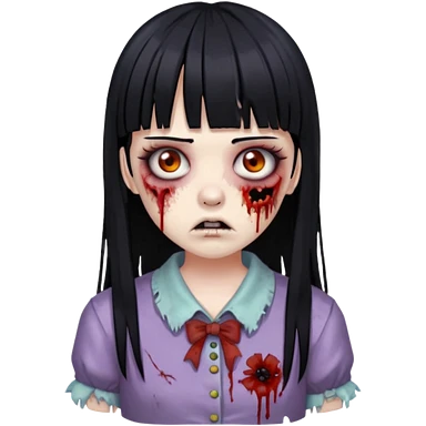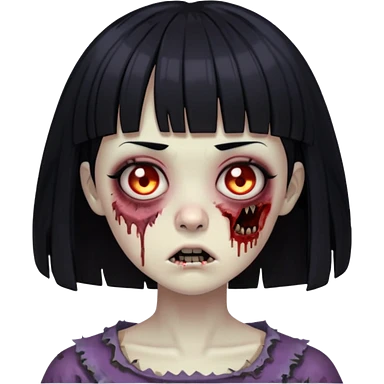 zombie with black hair and bangs, hime cut bangs emoji