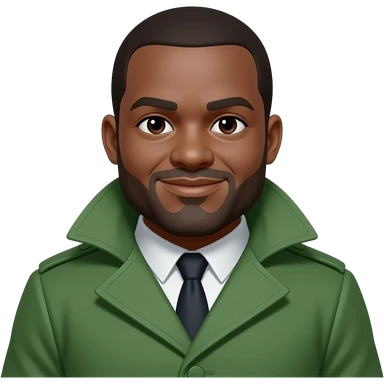 Homem gordo, negro de casaco verde emoji