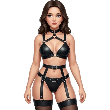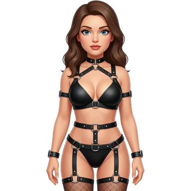 Standing Nude woman in bdsm body harness, high heels, average breasts emoji