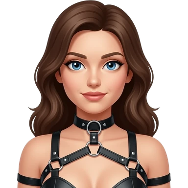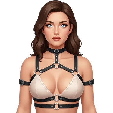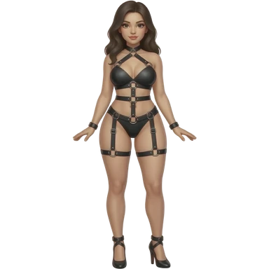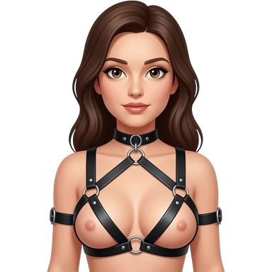 Nude woman in bdsm body harness, high heels, average breasts, no underwear emoji