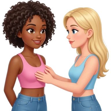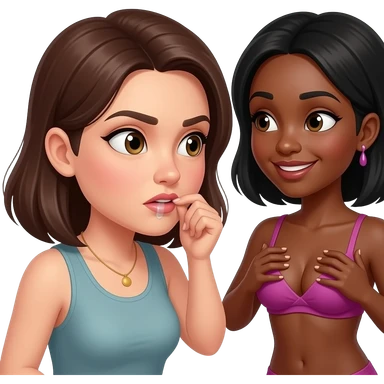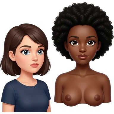 A black woman gets her breasts touched by a white woman naked emoji