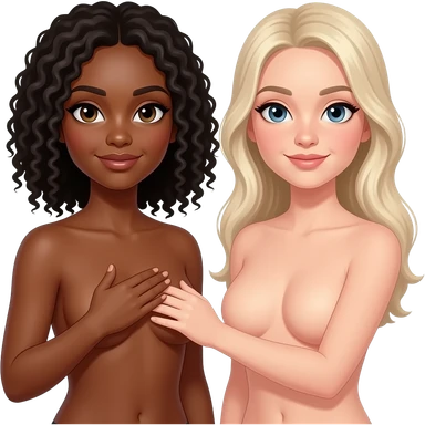 A black woman gets her breasts touched by a white woman naked with their nipples shown emoji