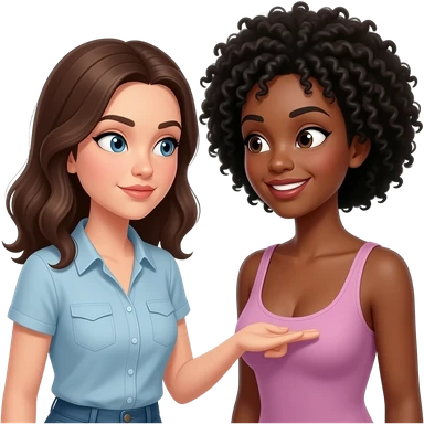A woman stares intently thirsty at a black womans breasts with a michevious smile on their face emoji