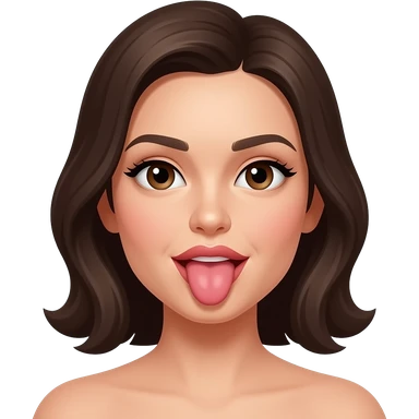 A woman licks her own nipple emoji