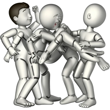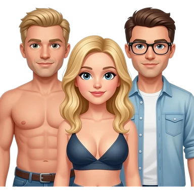 Two blonde twins with bare large breadts with a man with light brown hair and black glasses emoji