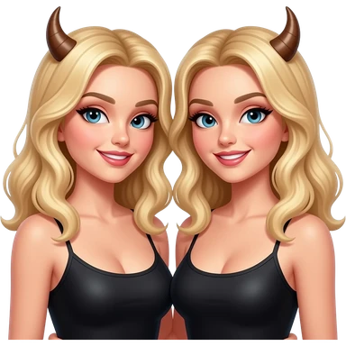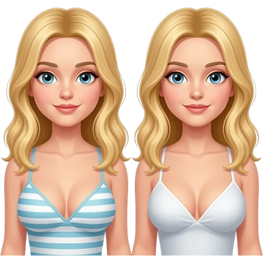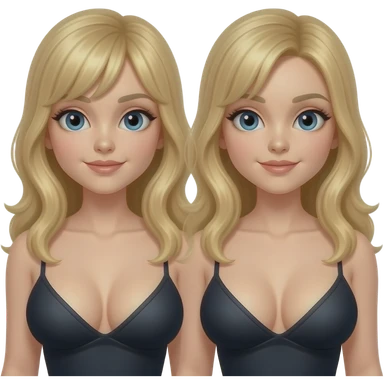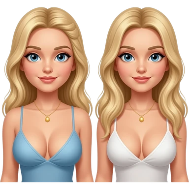 Make an emoji of my pic file:///var/mobile/Library/SMS/Attachments/44/04/CAD02A14-1326-4E90-9FCD-F5731052EA4A/IMG_5587.HEIC blond twins with large breasts emoji