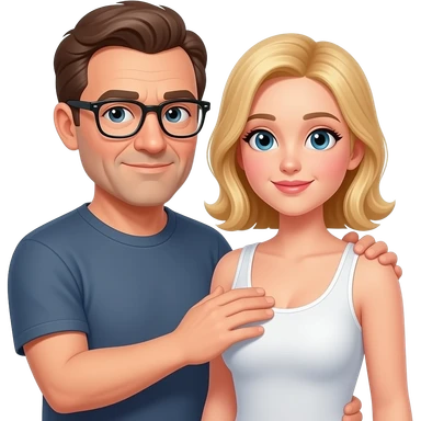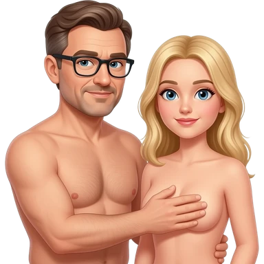 A middle age man with light brown girl is nude hair combed to the side with black glasses feeling a hot blonde girls breast emoji