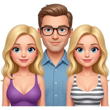 Two blonde twins with large breadts with a man with light brown hair and black glasses emoji
