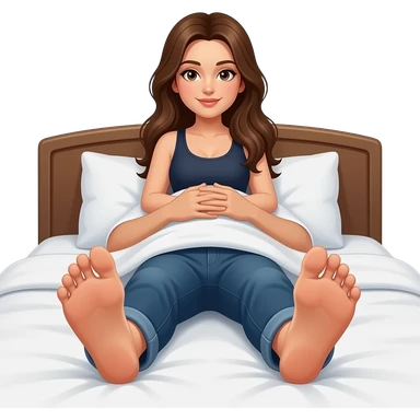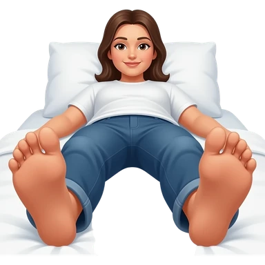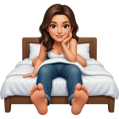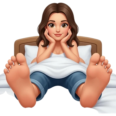 Women on top of man, man below her. Only feet visible of both showing woman is on top man. . Showing couple intimate moments on bed. emoji