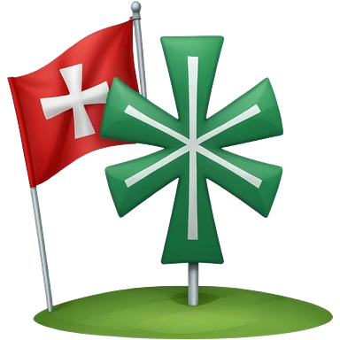 hacme un emoji de una vandera con el fondo rojo que tenca una cruz blanca y una equis por detras de la blanca de color verde emoji