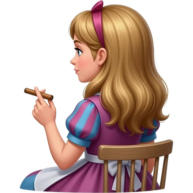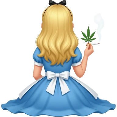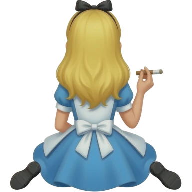 Alice from Alice in Wonderland sitting down from behind Smoking a blunt emoji