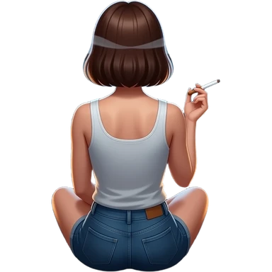 Alice sitting down from behind Smoking a blunt emoji