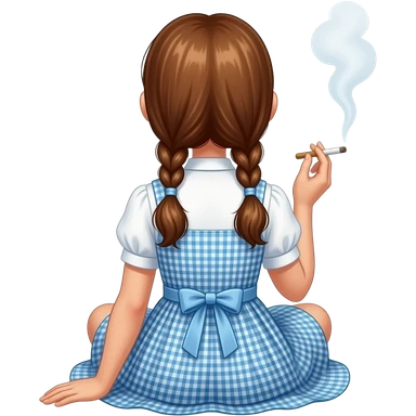 Dorothy Gale from the Wizard of Oz sitting down from behind Smoking a blunt emoji
