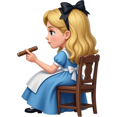 Alice Kingsleigh from Alice in Wonderland sitting down from behind Smoking a cigar emoji