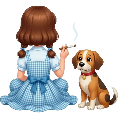 Dorothy Gale from the Wizard of Oz sitting down from behind Smoking a blunt with Toto emoji