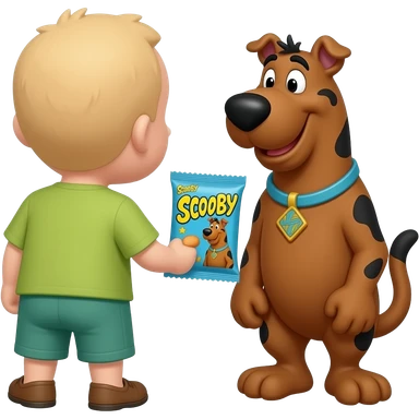 Shaggy from Scooby Doo from behind handing over Scooby Snax emoji