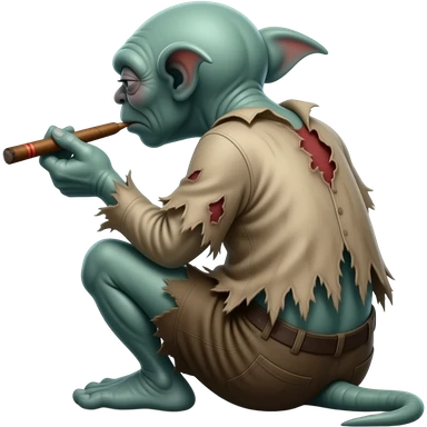 Dobby from Harry Potter sitting down from behind Smoking a blunt emoji