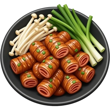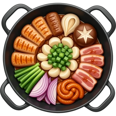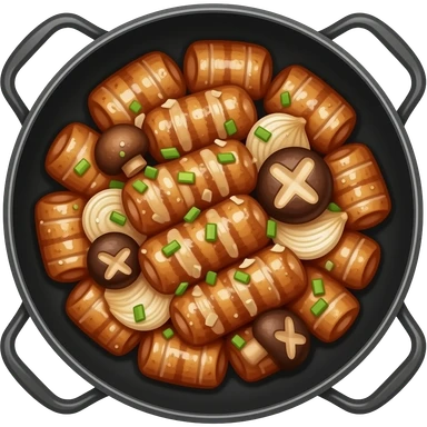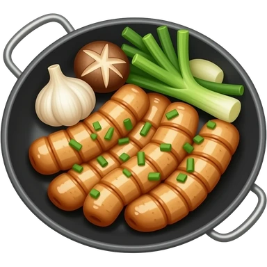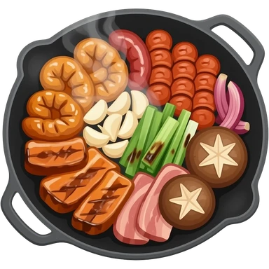 kawaii gopchang platter emoji, grilled meat and vegetables on a pan, simple cute icon style\ emoji