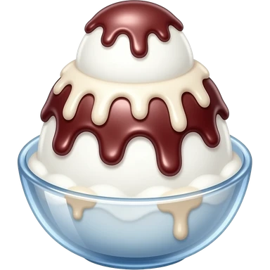 korean shaved ice dessert bingsu with red bean paste, fluffy white ice, sweet condensed milk, cute emoji style, simple bowl emoji