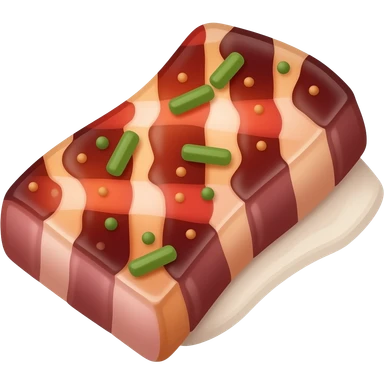 korean samgyeopsal emoji, grilled pork belly slices on a grill, slightly charred edges, sizzling effect, kawaii food icon emoji