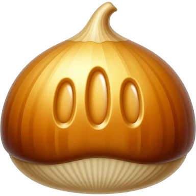 butter rice cake emoji, chestnut shape, three finger marks, glossy golden surface, simple icon style emoji