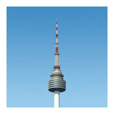 Namsan Seoul Tower, clear blue sky, simple composition, centered tower, minimal background emoji