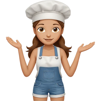 Sexy Full body pretty Long brown hair brown eyed female chef wearing white tank top, denim shorts and chef hat arms folded emoji