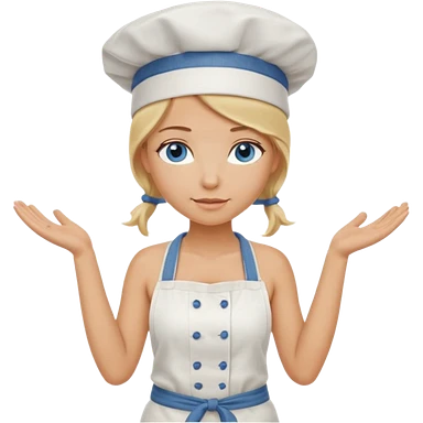 Sexy Full body pretty Long Blonde hair blue eyed female chef wearing white tank top, denim shorts and chef hat arms folded emoji