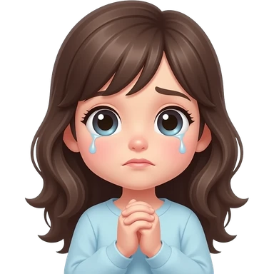 A cute, beautiful girl with big sparkling eyes, slightly teary, hands clasped, pleading expression, soft lighting, pastel tones, anime style emoji