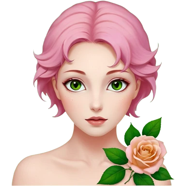 Petit sapin vert sylvestre, féminin, regard malicieux, tâches de rousseurs délicates, joues roses. Yeux de biche brillants en forme amande, yeux couleur ambre, tronc couleur acajou. Sapin en mouvement, incurvé pour un effet vivant. emoji