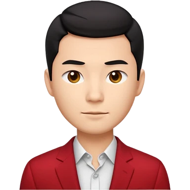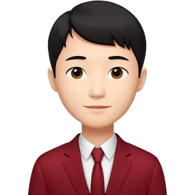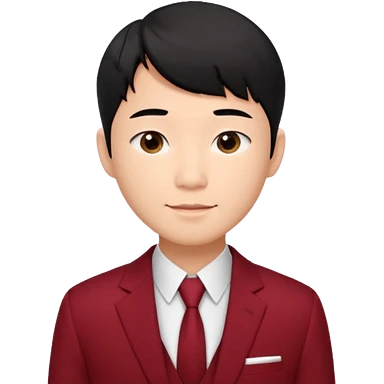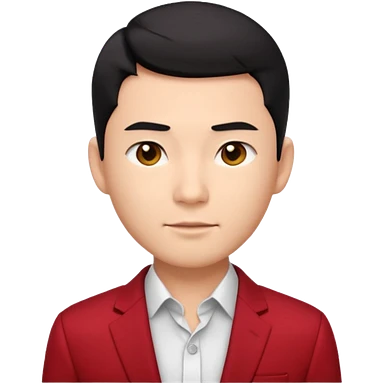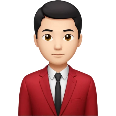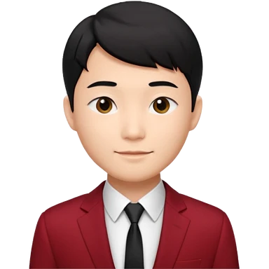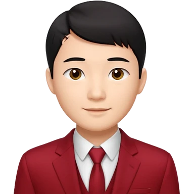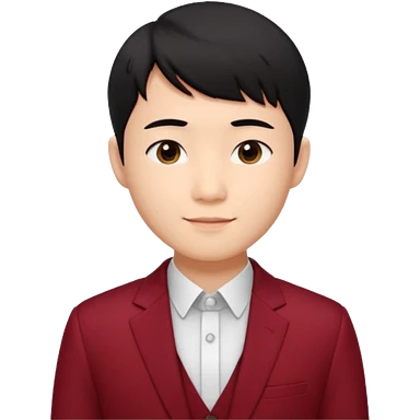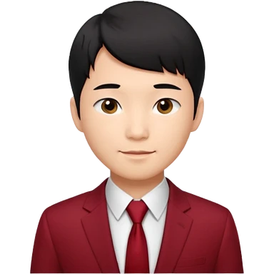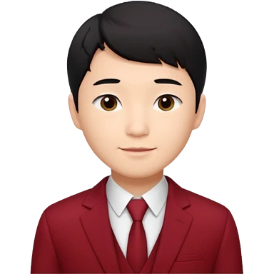 handsome Asian man emoji, short black hair with soft fringe, clean and elegant look, fair skin, gentle smile, wearing dark red suit and white shirt emoji