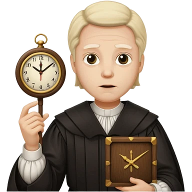 a 1600s judge with a hurried expression holding a clock that is UNFAIR emoji