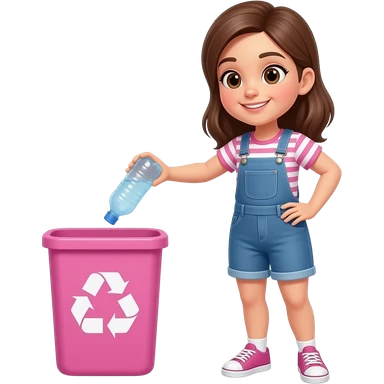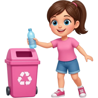Bote rosado de Reciclaje niña arrojando botella con plastico emoji