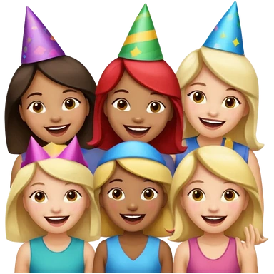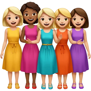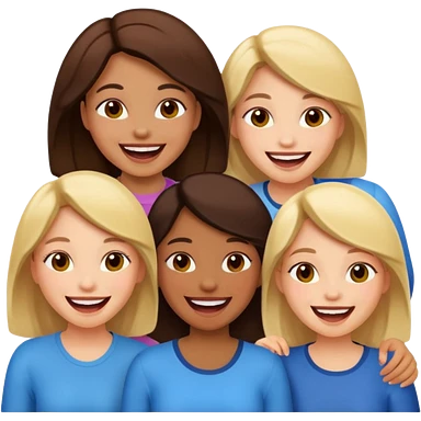 Компанія дівчат троє одна дівчина з чорним волоссям хвилястим довгим карими очима, друга з блондинистим довгим волоссям блакитними очима, третя з темним каштановим волоссям і зеленими очима, вони усі обіймаються emoji