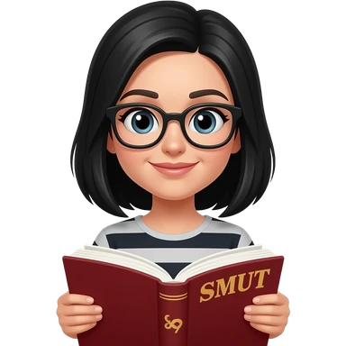 Sexy Smut book white skin female reader With curly black hair and glasses emoji