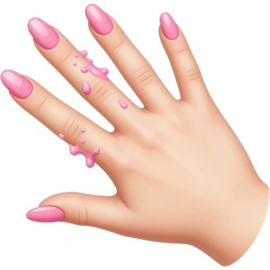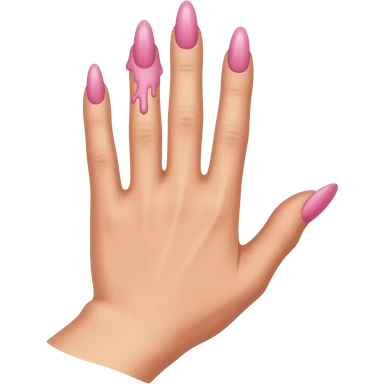 Female hand with long pink nails with wet splatter on her index and middle finger emoji