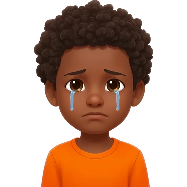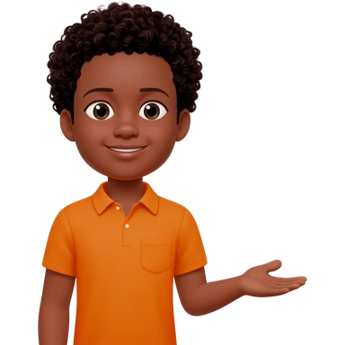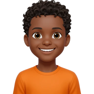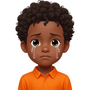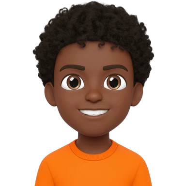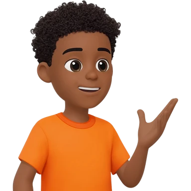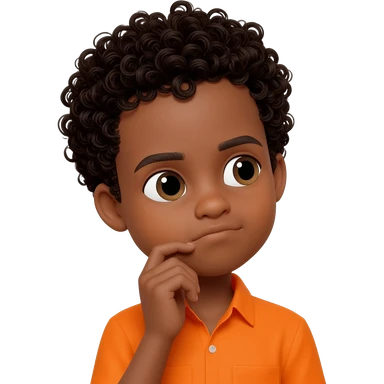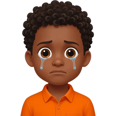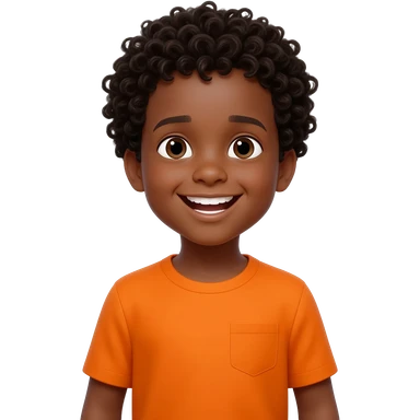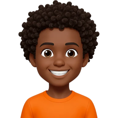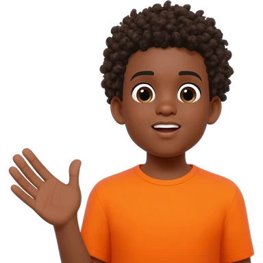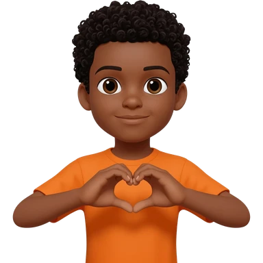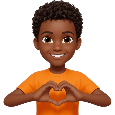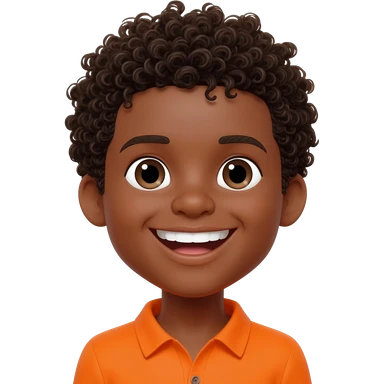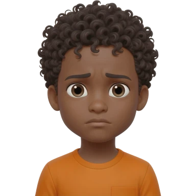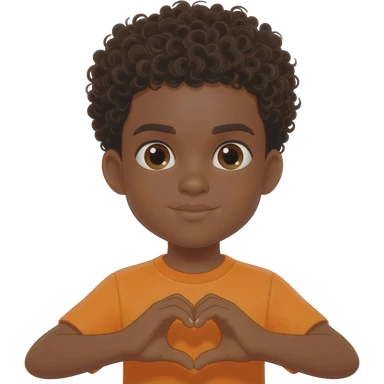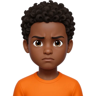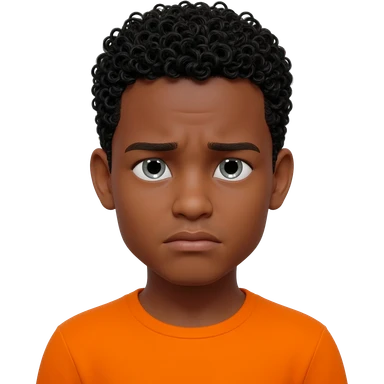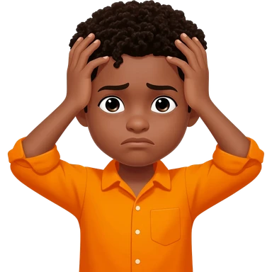 black boy curly hair orange shirt overwhelmed hands on head emoji