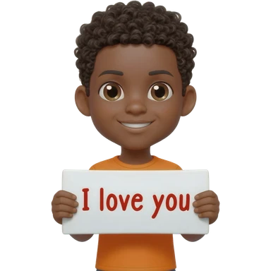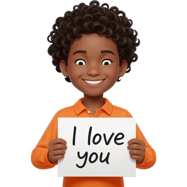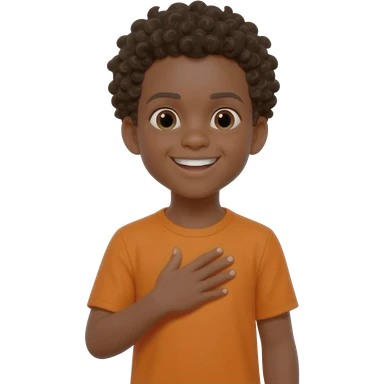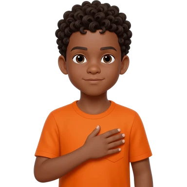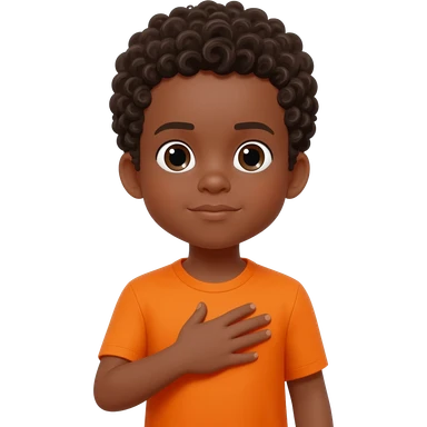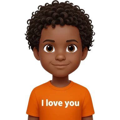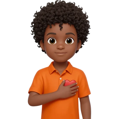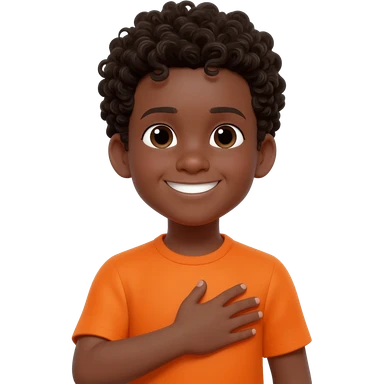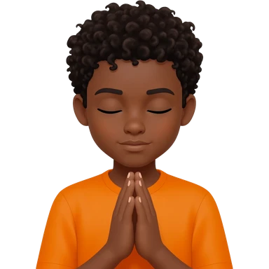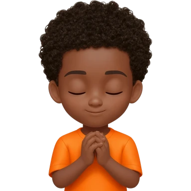 black boy curly hair orange shirt praying hands eyes closed emoji